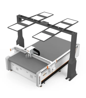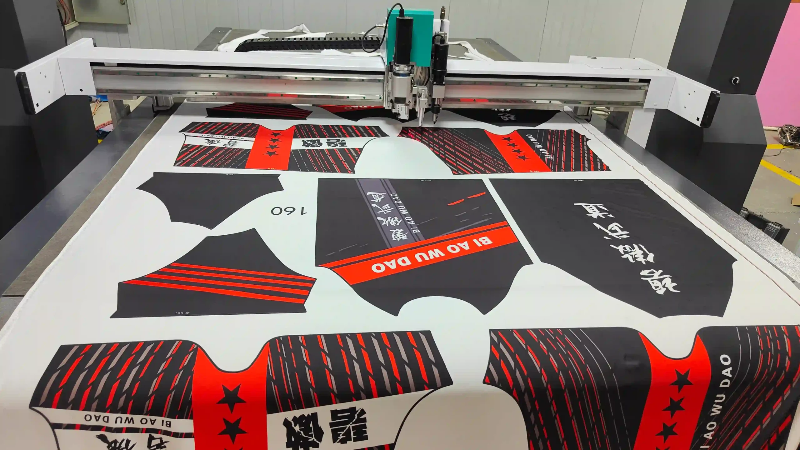 The vibrating knife cutting machine can cut printed material such as fabric and leather, achieving smooth edges, precise dimensions, and avoiding high temperatures that could damage the fabric. When combined with a camera recognition system or projector and an automatic nesting system, it can identify patterns, quickly arrange layouts, and perform cutting tasks efficiently and rapidly.