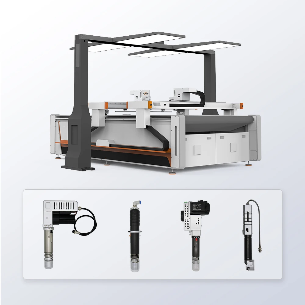 Tools avilable | Oscillating knife. Driven rotary knife. Creasing wheel. Kiss cutting tool. Pneumatic knife. Milling tool. V groove knife etc. | ||||||